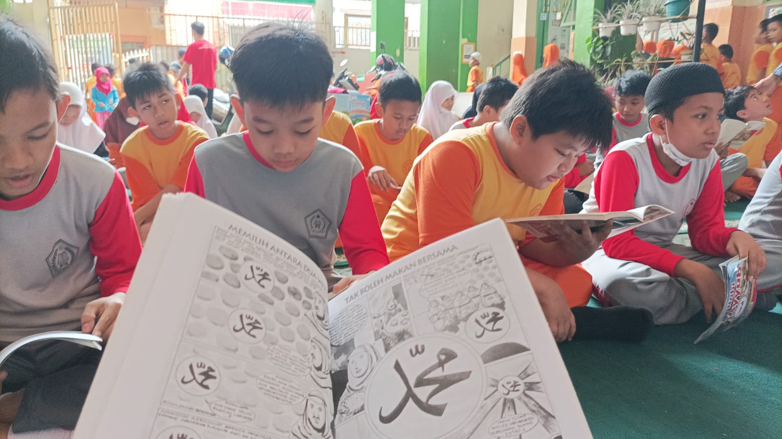 Mereka dikumpulkan dilapangan dan disiapkan buku bacaan, kemudian diberi kesempatan membaca buku bacaan yang disukainya. Setelah kegiatan baca bersama ada sesi tanya jawab terkait isi buku bacaan yang telah dibacanya.